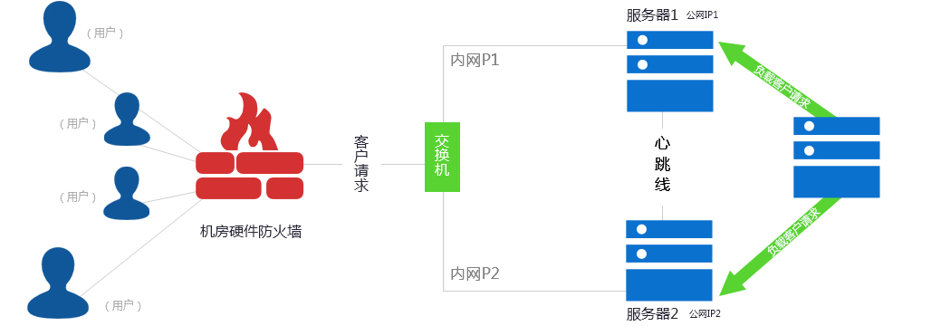 此方案主要應用于WEB、數(shù)據(jù)庫等應用服務器,服務器必須在同一機房且機器之間有心跳線連接