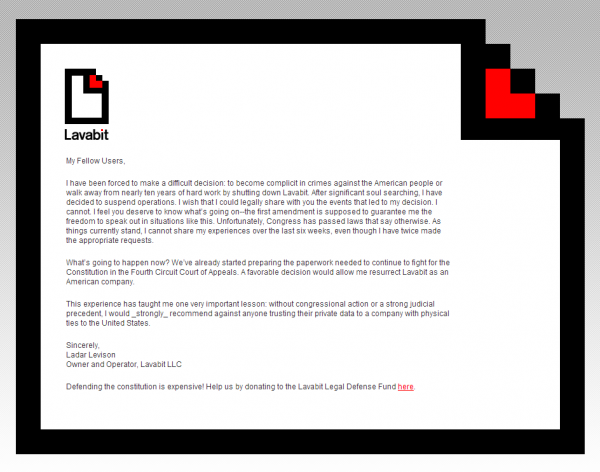 毫無疑問,Lavabit是在暗示美國政府試圖通過某種方式來訪問它的數據,甚至可能就是沖著斯諾登的郵件而來的,但我們目前并無任何明證。