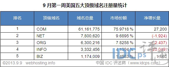 (圖1)中美五大頂級域名注冊量統計(截至2013-9-9)