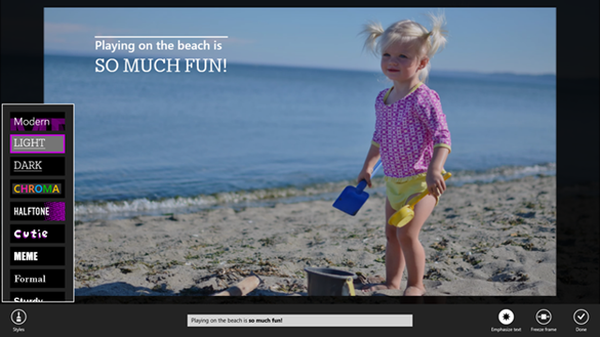 不知道大家還記不記的最早出現(xiàn)在Windows XP SP2上的Windows Movie Maker,微軟將這款軟件帶回了Windows 8.1,只不過在功能上進行了簡化,并且轉(zhuǎn)化成Modern風格版本。Movie Moments是微軟為Windows 8.1 用戶準備的另一款應用,用戶能夠用它來創(chuàng)建和編輯短視頻、音樂。同時你能夠通過網(wǎng)絡,快速分享你的視頻。要知道目前在Windows 8應用商店中鮮有視頻編輯軟件,簡單易用的Movie Moments將改變目前這個局面。