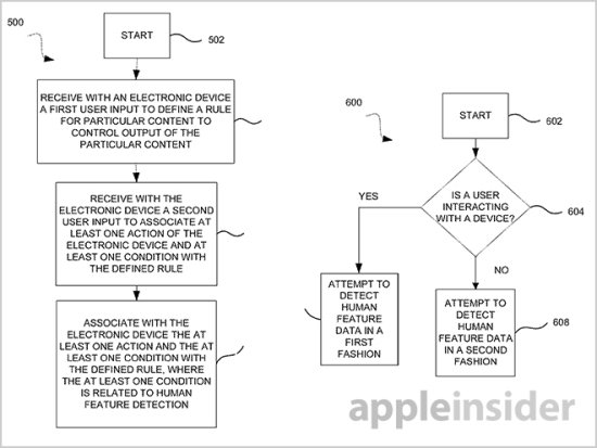 日前,美國(guó)專利和商標(biāo)局剛剛通過(guò)了蘋果一項(xiàng)新專利申請(qǐng),該項(xiàng)目被稱為“基于人類識(shí)別數(shù)據(jù)檢測(cè)控制內(nèi)容輸入的系統(tǒng)和方法”。這項(xiàng)專利可以利用電子設(shè)備的內(nèi)置傳感器檢測(cè)到用戶存在,并且根據(jù)檢測(cè)的數(shù)據(jù)來(lái)自動(dòng)判斷某些媒體的播放。例如在孩子進(jìn)屋之后,系統(tǒng)將自動(dòng)停止成人電影的播放。