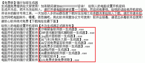 據查,制作者出售敲詐者病毒生成器牟利,購買者可隨意編輯密碼,留下自己的QQ號來詐取錢財,黑色利益鏈導致敲詐者病毒泛濫成災。