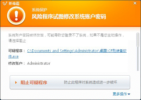 圖6.金山毒霸攔截病毒修改系統賬戶和密碼