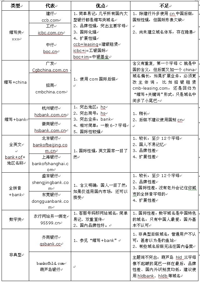 先別下結(jié)論,先舉例來總結(jié)下目前銀行域名的類型和優(yōu)缺點(diǎn):