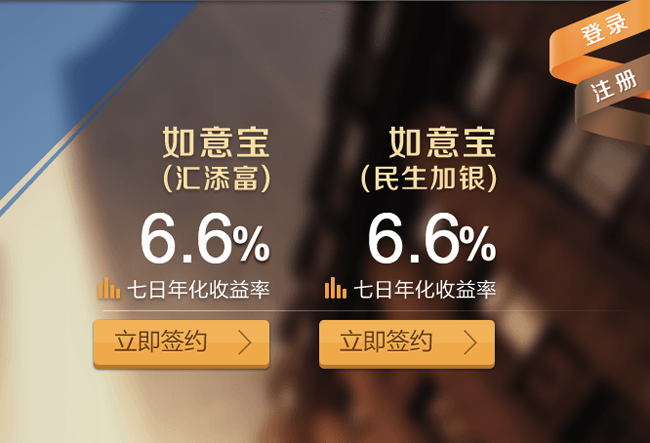 民生直銷銀行推出“如意寶”理財產品,對接匯添富和民生加銀兩款貨幣基金。用戶選擇簽約其中一款,賬戶中的資金便會自動申購貨幣基金,從而獲得高于活期存款的收益。