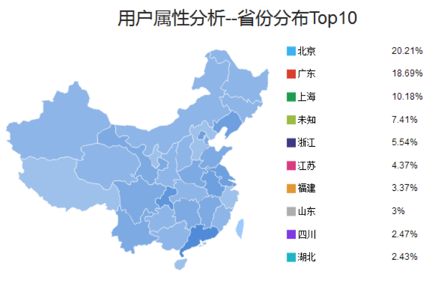 由于各個公眾號的定位以及用戶群體不同,用戶屬性會有所差異;下面列出本號的用戶熟悉以供參考(由于城市數量較多,就不列出)。