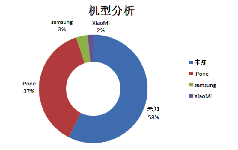 已知的機型里,iPhone最多,三星和小米其次,其他的應該絕大部分是Android手機,無奈國產機紛繁復雜,統計起來也非常麻煩。如果是針對某一機型,或某一操作系統做的公眾號,機型或終端分布才會出現巨大偏差。