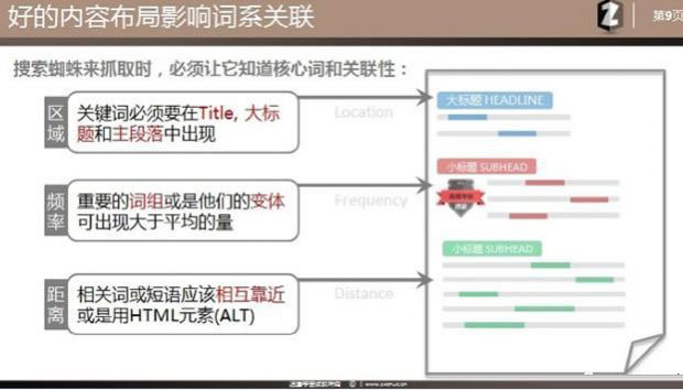 方法(3)距離產生美在SEO世界是不適用的。詞、短語、還是語句都應該盡量的放近在一起,或是使用HTML元素(比如圖片ALT設置)。所以為了提升語境關聯,應該把內容通過段落,列表,分區做的更加明顯,一看就知道這個段落是說什么。前后句子之間是否有聯通性,不要把意思相近的內容分開的太遠。因為你不能保證蜘蛛會把全文統抓。