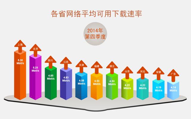 報(bào)告還稱,全國(guó)平均可用下載速率繼續(xù)保持增長(zhǎng)態(tài)勢(shì),比上一季度提高了0.16Mbit/s。從各省情況看,排名前3位的省市保持不變,仍是上海、北京和四川。繼續(xù)增加,新進(jìn)中西部的寧夏、湖南和吉林,達(dá)到14個(gè)省市。另外,中西部省份的網(wǎng)速在第4季度快速提升,青海、新疆、寧夏和江西省的季度漲幅均超過(guò)9個(gè)百分點(diǎn)。