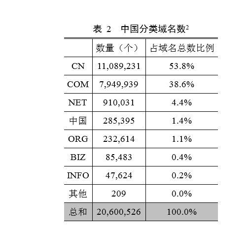 我國域名總數為2060萬個,其中“.CN”域名總數年增長為2.4%,達到1109萬,在中國域名總數中占比達53.8% 。