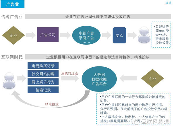 2、未來廣告業(yè)將依托互聯(lián)網大數據進行再建立。在未來,在你酒后駕車被罰后,也許你老婆的手機里面會出現是否需要為你購買保險的短信廣告。