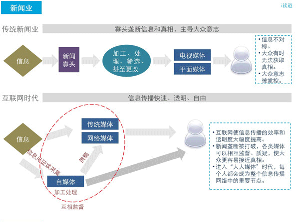 傳統(tǒng)新聞業(yè)被寡頭壟斷,在這樣一種壟斷之下,實際上是在壟斷真相。自媒體,以及小微媒體可以說是隨著互聯(lián)網發(fā)展進程的必然產物。互聯(lián)網進化最大的特點就是,透明!透明!再透明!福柯說過話語的本質就是權力意志,如果說新聞業(yè)是話語霸權的主導者,那么自媒體就是對話語霸權的解構,使得話語權力回歸到每一個有話語權的言說者身上。