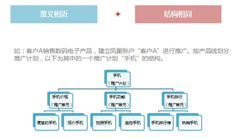 由于一個單元內的關鍵詞共用創意,因此要保證創意通順,首先需搭建合理的賬戶結構。合理的賬戶結構中,單元搭建遵循兩個原則: