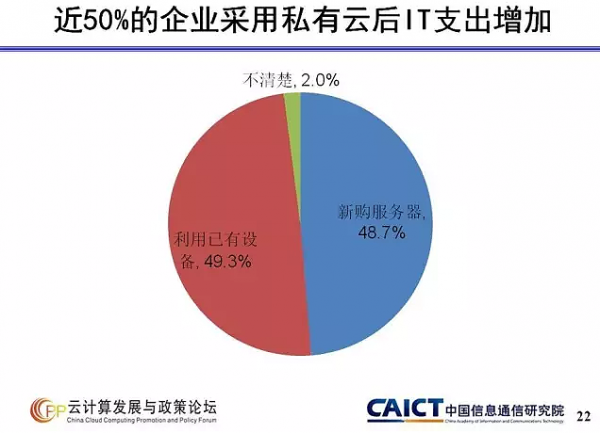 對于那些沒有部署私有云的受訪者,報告中指出,人員技術水平是影響他們部署私有云的最大障礙,企業的IT人員往往對私有云不夠了解,不同私有云解決方案間標準不夠統一。部分受訪者對私有云的部署周期、維護難度以及投資回報等方面抱有疑慮。而近50%的私有云用戶表示,自己的企業采用私有云后需要新添置