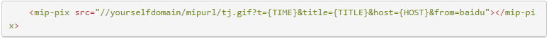 MIP會自動匹配參數(shù),生成請求地址,例如://yourselfdomain/mipurl/tj.gif?t=1459415529464&title=MIP_PIX_DEMO&host=mip.bdstatic.com&from=baidu