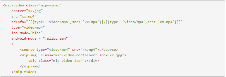 mip-video用來支持在mip中增加視頻內(nèi)容,該視頻組件支持在文本中插入一個視頻,插入的視頻不先定大小與尺寸,自動生成按照屏幕尺寸縮放的縮略圖,點擊多略圖可以播放視頻。
