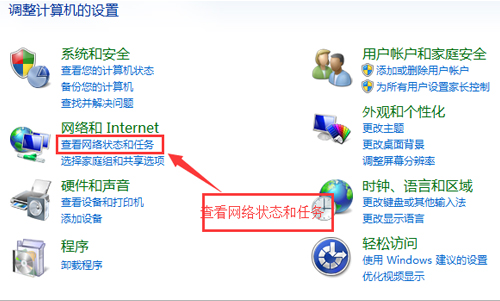 2、進(jìn)入控制面板設(shè)置頁(yè)面,找到網(wǎng)絡(luò)狀態(tài)和任務(wù),點(diǎn)擊進(jìn)入設(shè)置頁(yè)面。