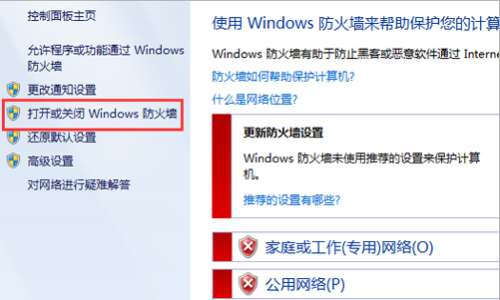 4、在導(dǎo)航欄左側(cè)找到,打開(kāi)或關(guān)閉Windows 防火墻。