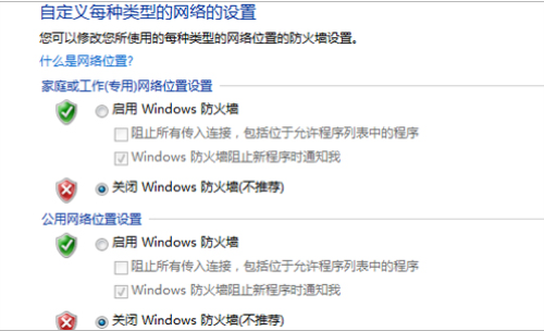 5、根據(jù)自己的實(shí)際情況,選擇關(guān)閉或者啟用防火墻!