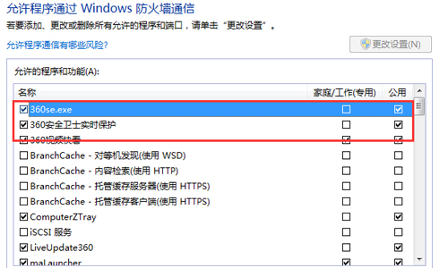 6、我們還可以對(duì)防火墻進(jìn)一步設(shè)置,在左側(cè)導(dǎo)航欄選擇允許程序或功能通過(guò)Windows防火墻,我們可以查看那些程序和功能允許通過(guò)防火墻,若我們不想某個(gè)程序或功能通過(guò)防火墻,我們將前面的√去掉即可。 如圖1、圖2所示: