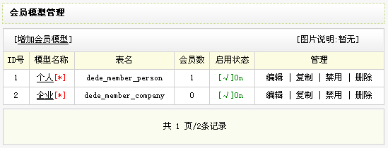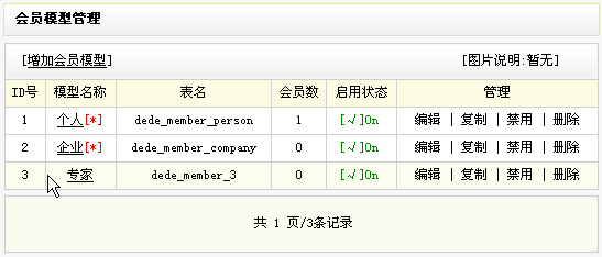 按圖三創建好會員模型以后,我們返回圖二界面,即可看到剛才所創建的新模型。如圖四: