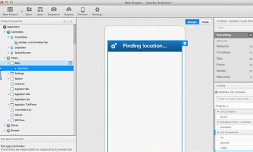 在開發(fā)移動和桌面應用的工具中,Sencha的定位是HTML5可視化應用開發(fā)。開發(fā)團隊可以在一個單一集成的環(huán)境中完成應用的設計、開發(fā)和部署。開發(fā)者還可以開發(fā)Sencha Touch2和Ext JS4 JavaScript應用,并能夠?qū)崟r預覽。