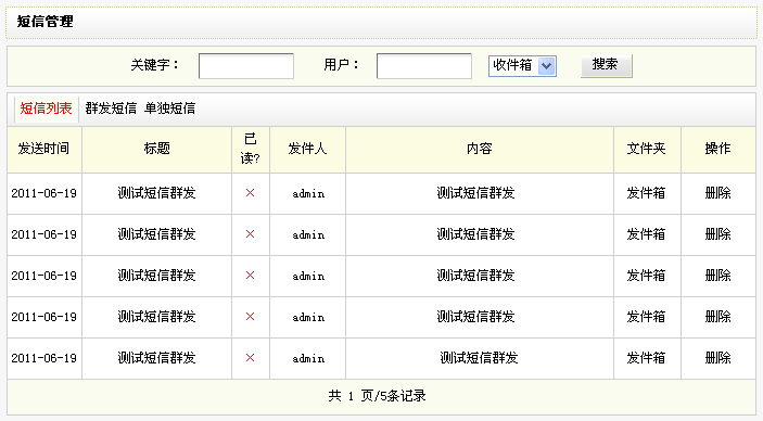 群發短信:可以對網站的注冊會員進行批量群發站內消息;
