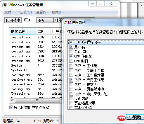 3.打開Windows任務管理器,點擊查看,點擊選擇列,勾起PID選項,如下圖所示: