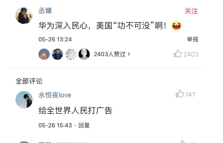 有網友朋友說華為深入民心,美國“功不可沒”,的確,華為能夠得到國外行動上支持首先肯定是產品自身足夠優秀獲得了用戶的肯定,美國所謂冠冕堂皇的借口在世人看來是站不住腳,這一行徑只是將其的霸權主義演繹的淋漓盡致,另外就是讓我們看到了自己國家的企業的產品在國外也是深得人心。