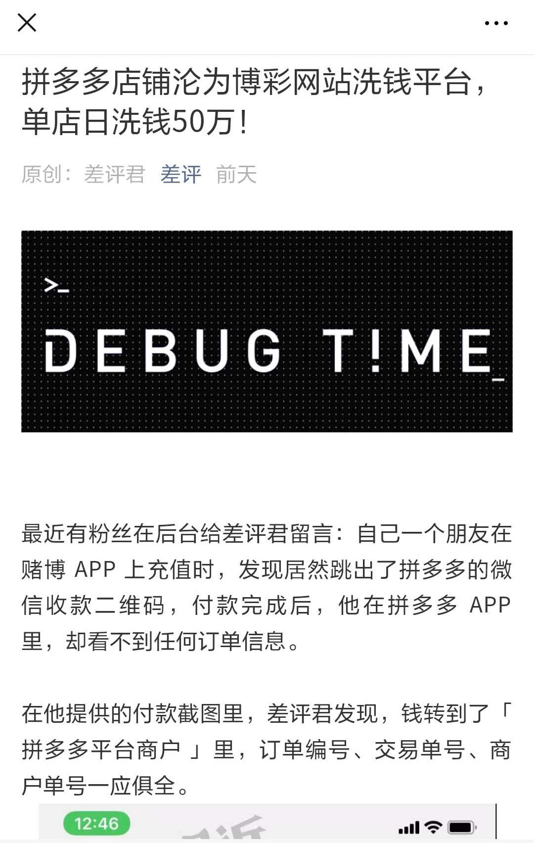 風控負責人表示:差評這位寫手將拼多多作為了“線上洗錢”的主流渠道和博彩網(wǎng)站收款的“支付通道”,既犯了常識性錯誤(拼多多不涉及任何支付通道行為)又對平臺進行了“觀點先行”之后的精心惡意中傷。