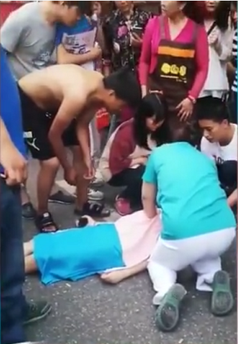 “當(dāng)時(shí),有個(gè)女孩子躺在地上,呼吸特別微弱。她的閨蜜在一旁很著急的樣子,但也不知道該怎么辦。”徐鑫回憶,學(xué)過(guò)心肺復(fù)蘇的他把手機(jī)交給同伴,就展開了施救。他讓人群散開,保持空氣流通,又讓女孩的閨蜜掐其人中,請(qǐng)一位圍觀者伸手墊著女孩的頭部,自己則十指重疊按壓暈倒女子胸口。