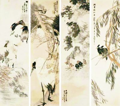 根據網傳現場照片顯示,被毀的是該場第1393號拍品——任伯年花鳥四屏之《淡黃楊柳帶棲鴉》,該畫作的下半截被完全撕斷。這件拍品的估價顯示為150萬至250萬港幣,目前在佳士得官網,該件拍品顯示已撤拍。