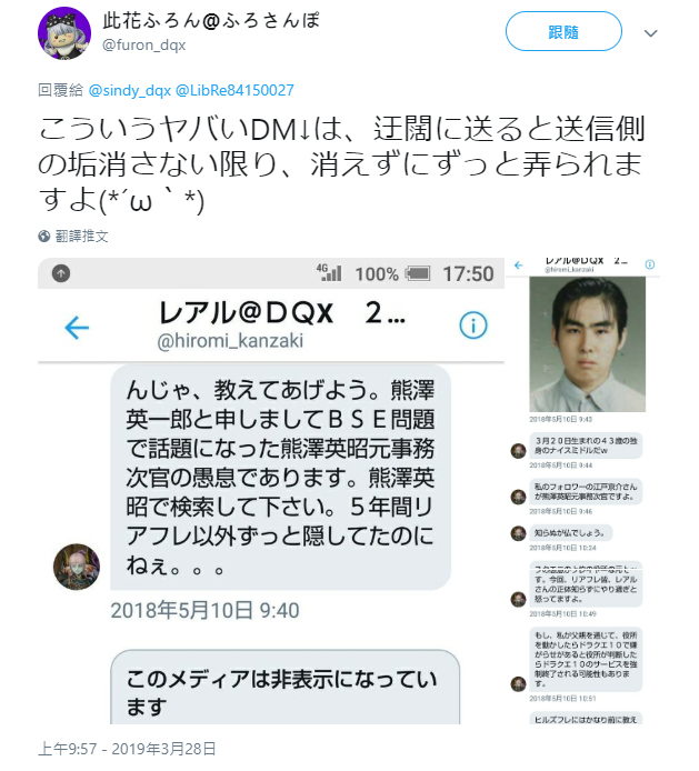 此案引起了許多日本網(wǎng)友的關(guān)注,有人甚至找到了疑似死者熊澤英一郎的推特賬號。有網(wǎng)友貼出了該賬號曾炫耀自己的家庭有從政背景的私信截圖: