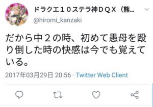 “所以我到現(xiàn)在都記得初中二年級時第一次打倒愚母的快感。”