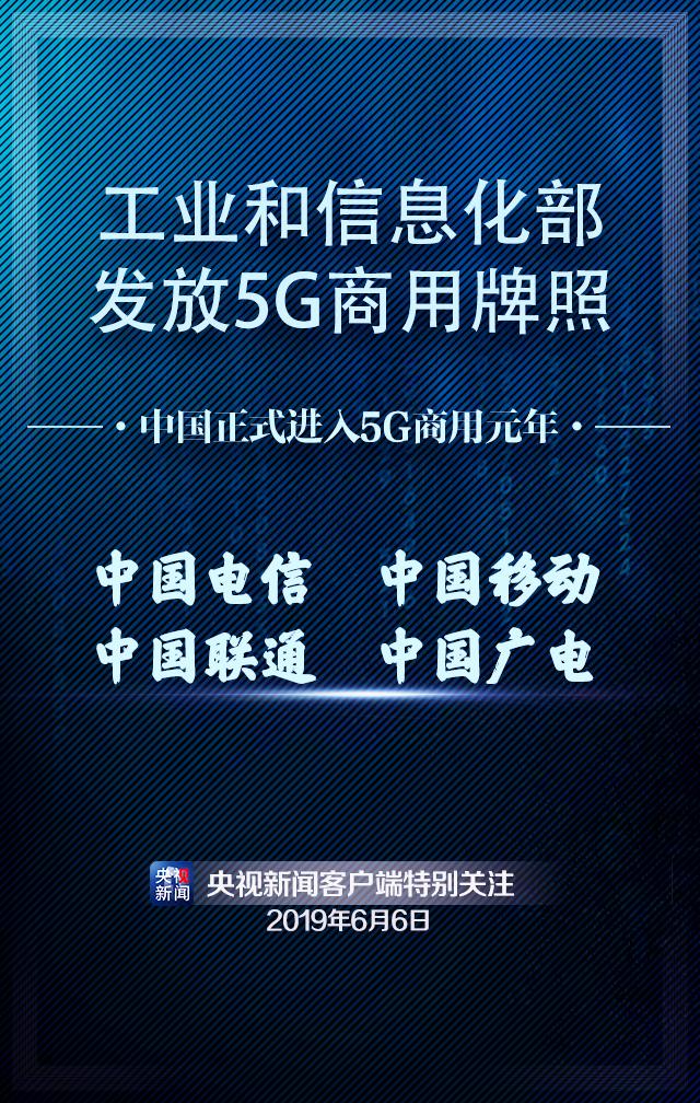 快訊:工信部今日發放5G商用牌照