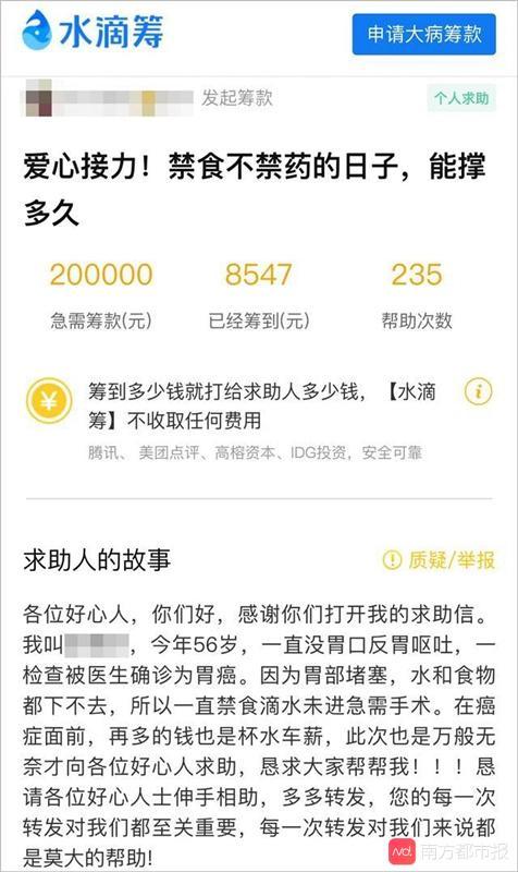 水滴籌稱正在辦理退款,將改進對發起人經濟狀況的審核