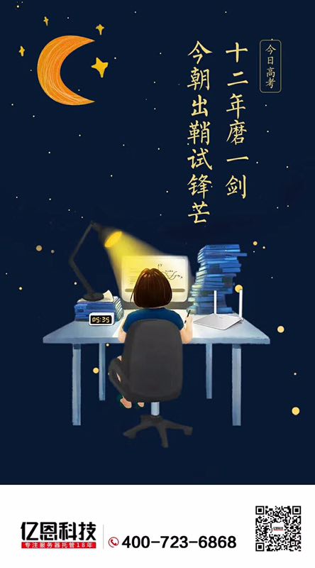 今天是6.7號(hào),又到了一年一度的高考時(shí)間。高考是無數(shù)學(xué)子寒窗苦讀十二年奮斗的目標(biāo),是無數(shù)貧困學(xué)生改變命運(yùn)的一搏,也是為自己這么多的年的努力交一份答卷。高考之后,你將告別自己的青蔥歲月,踏入人生的另一條道路,這條道路是坎坷還是平坦大道,決定權(quán)就在此一役。億恩科技的小編在此為大家助力,希望大家都考到好的成績(jī),踏入自己理想的校園。