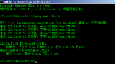 操作過程如下:對于Windows操作系統用戶請點擊左下角的開始->運行->輸入”cmd”并回車,這樣就到DOS命令窗口(黑底白定)->輸入ping 域名(如:ping www.163.com)->回車