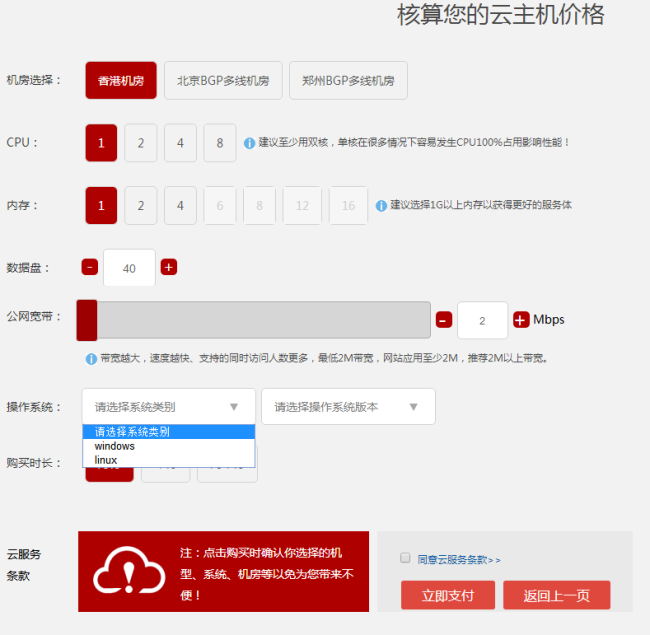 云主機購買時長可自由選擇月付、年付或者兩年付等,購買時間越長越劃算,目前億恩云主機是年付只需花10個月的費用享受12個月的使用,兩年付享受9折優惠。