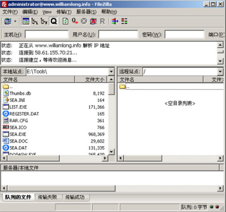 服務(wù)器FileZilla-將客戶端的文件上傳到服務(wù)器上,這個最常用的軟件是FTP了,微軟的IIS自帶了一個簡單的FTP服務(wù)器管理軟件,如果覺得不好用,服務(wù)器上也可以安裝免費的FileZilla服務(wù)器管理軟件,客戶端可以使用免費的FileZilla Client,支持多線程上傳文件。