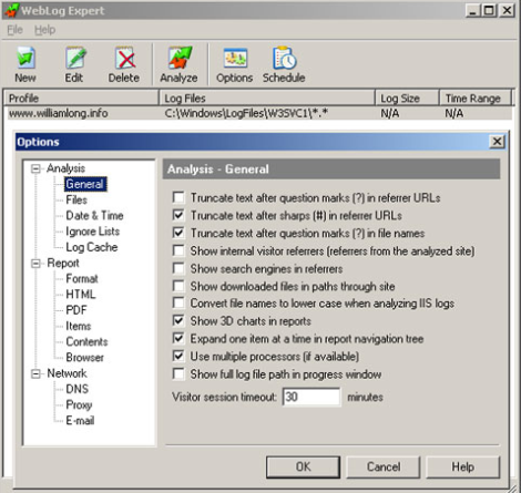 WebLog Expert - 雖然Google Analytics是一款強大的免費的網(wǎng)站分析服務(wù),但必須加入統(tǒng)計代碼才能使用,WebLog Expert則可以直接分析網(wǎng)站的訪問日志文件,通過日志文件分析出網(wǎng)站的站點訪問者、活動統(tǒng)計、文件訪問量、搜索引擎、瀏覽器、操作系統(tǒng)和錯誤頁面等等眾多的統(tǒng)計信息,是網(wǎng)絡(luò)監(jiān)測的好助手。這個軟件本身不免費,不過其另一個版本W(wǎng)ebLog Expert Lite是免費的。